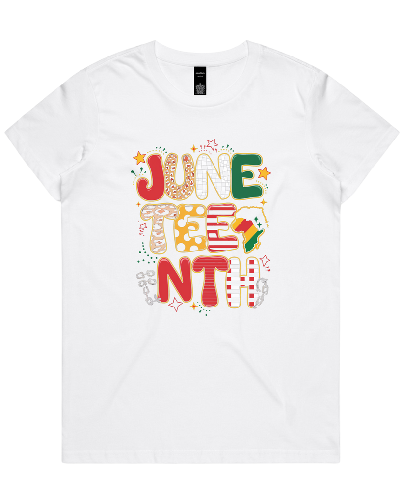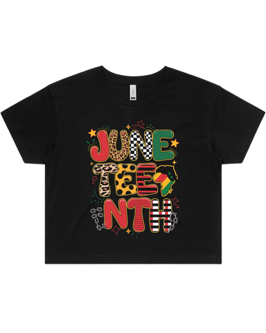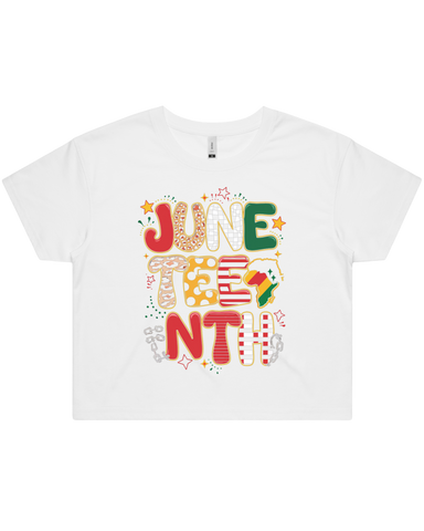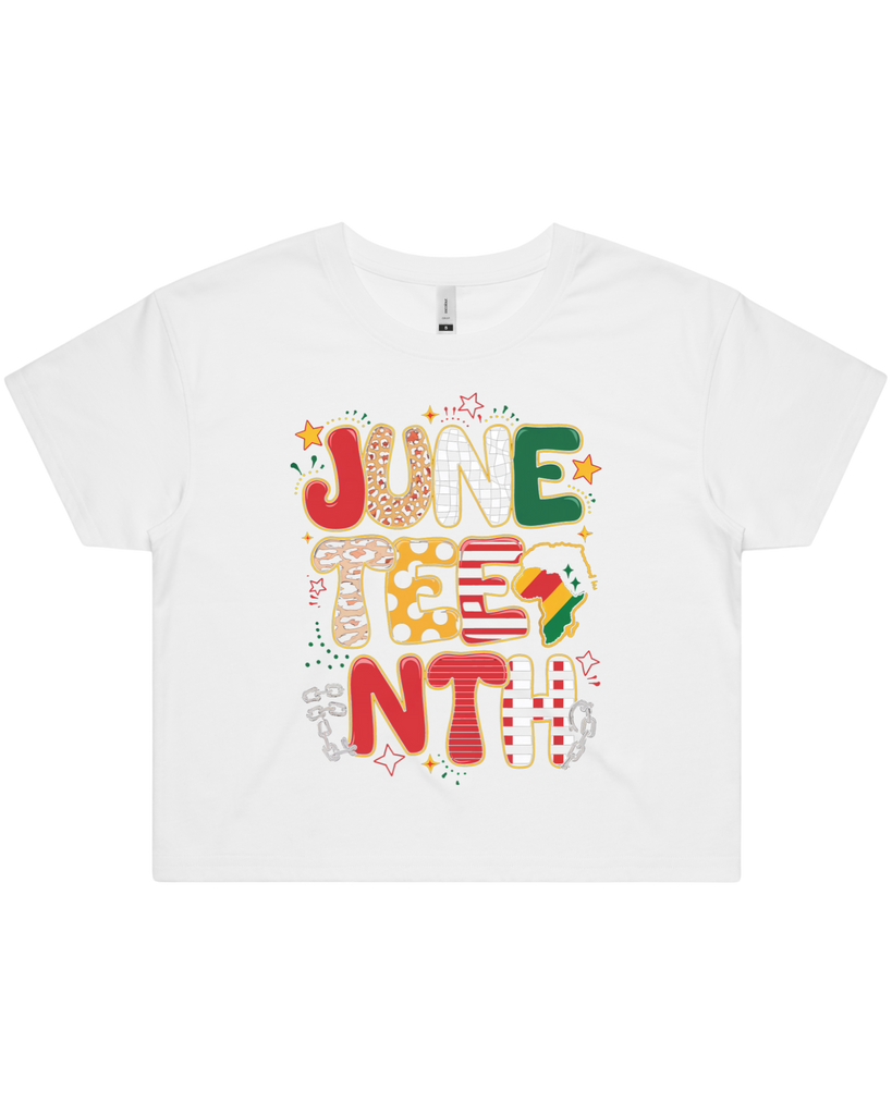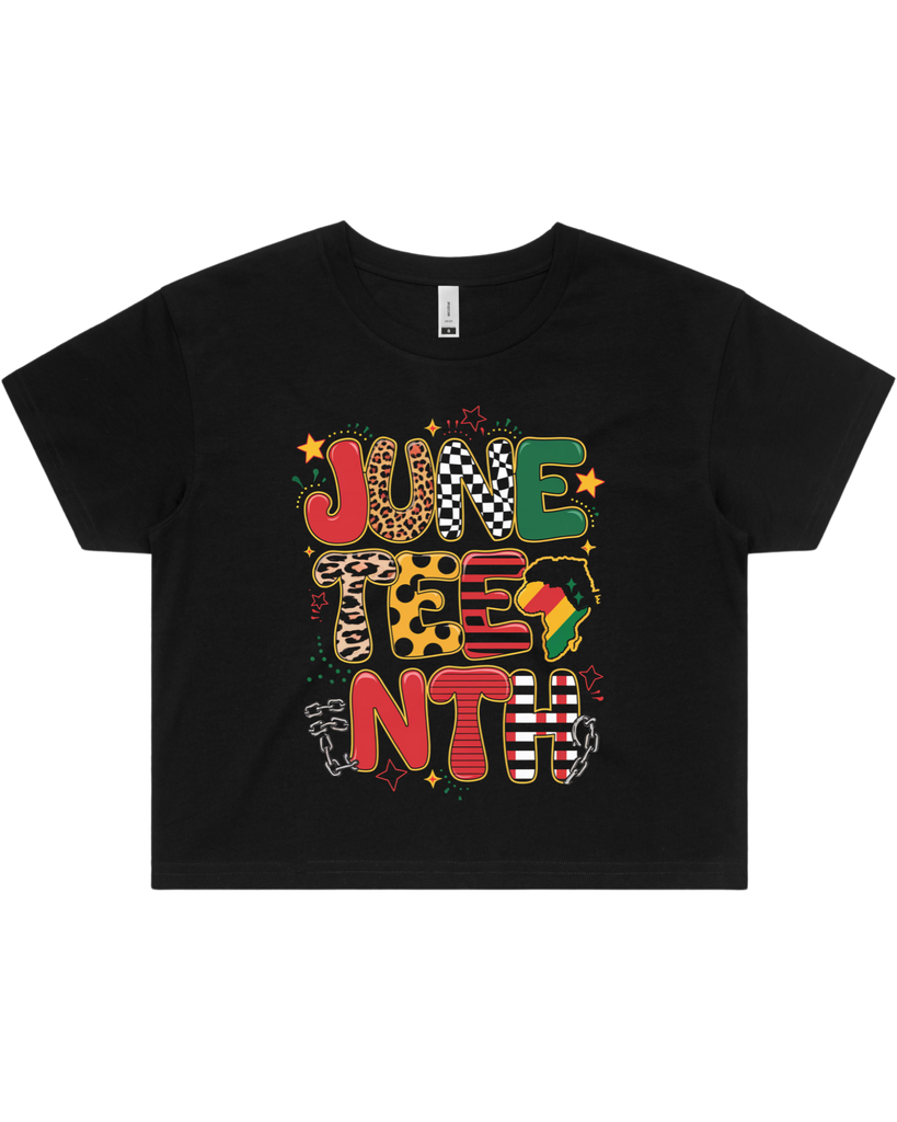 Crafted from 100% combed cotton with a mid-weight 5.3 oz fabric and 28-singles yarn, this Juneteenth shirt offers exceptional softness and durability. Featuring direct-to-garment printing, it ensures vibrant, long-lasting designs. Available in men's t-shirt, women's t-shirt, or women's crop top styles, it provides versatile options to celebrate Juneteenth with comfort and quality.